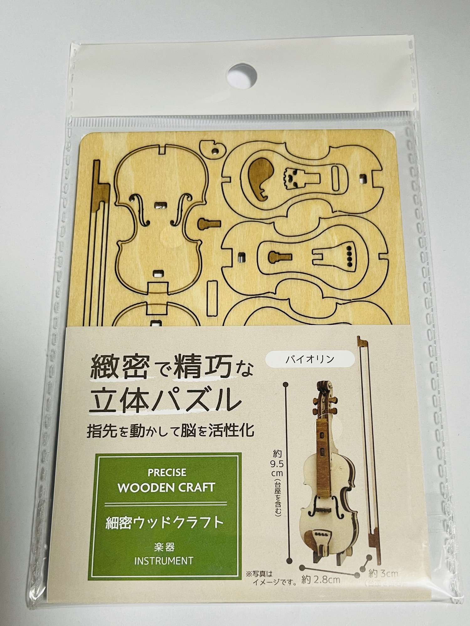 セリアで買ったミニ木工工作。多分バイオリンですが、ドールだとチェロサイズになります。