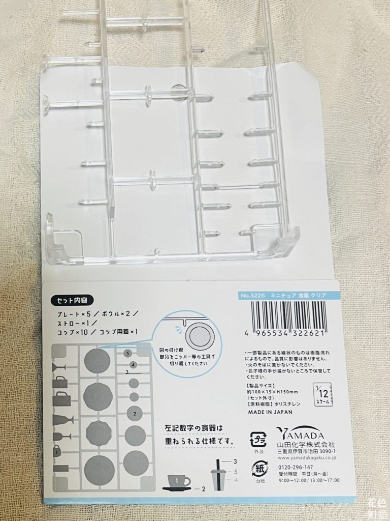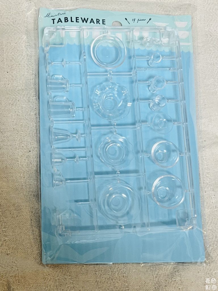 セリアで買った透明なテーブルウェア。ミニチュアでおなじみ山田化学です。